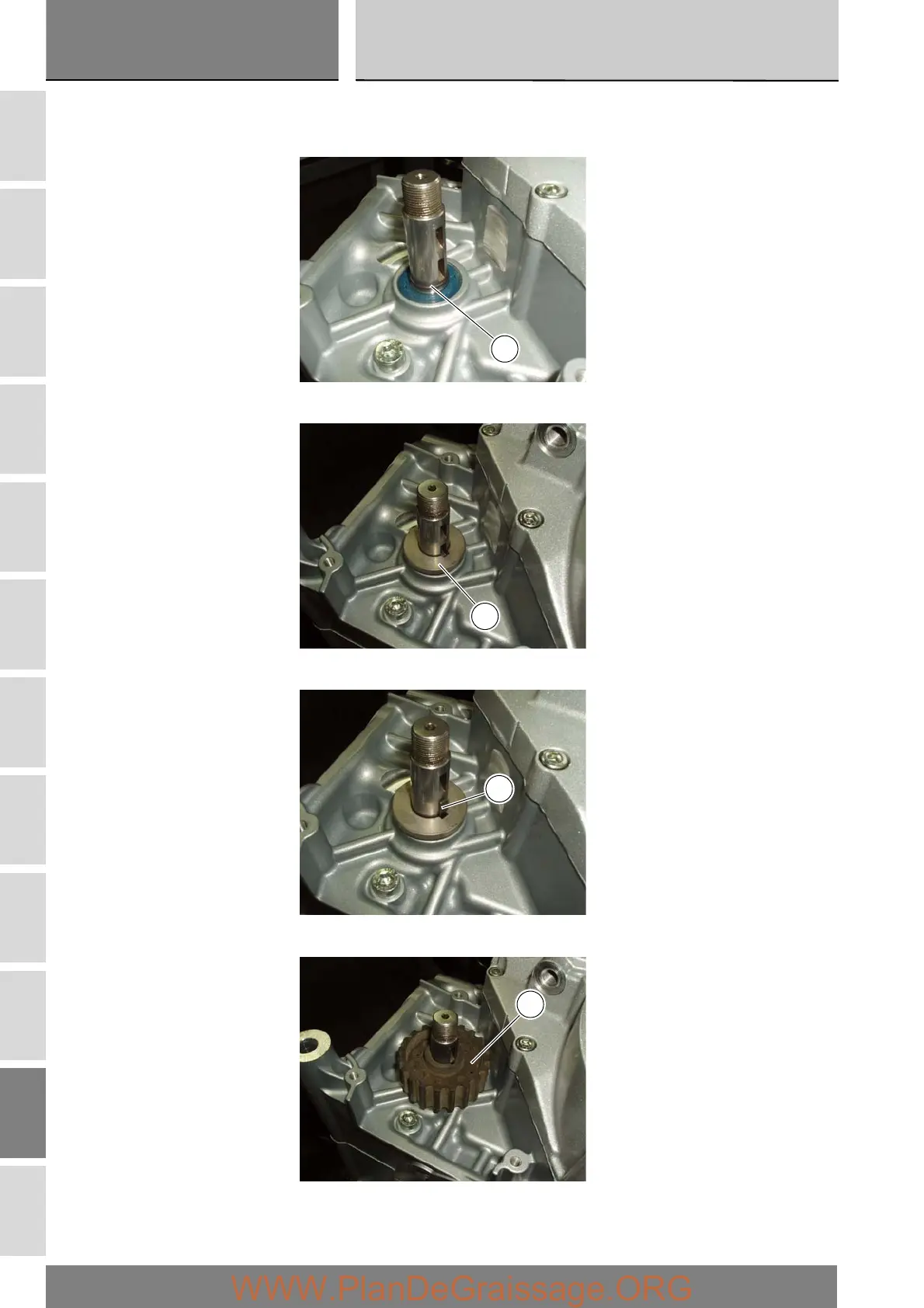 Install the inner spacer (17) on the driveshaft, taking care to align the notch in the spacer with the slot for the Woodruff key.