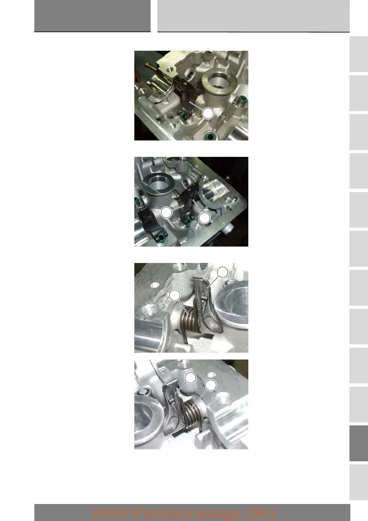 Proceed in a similar manner to install the closing rocker arm (4) with the spring (19) from the exhaust side.