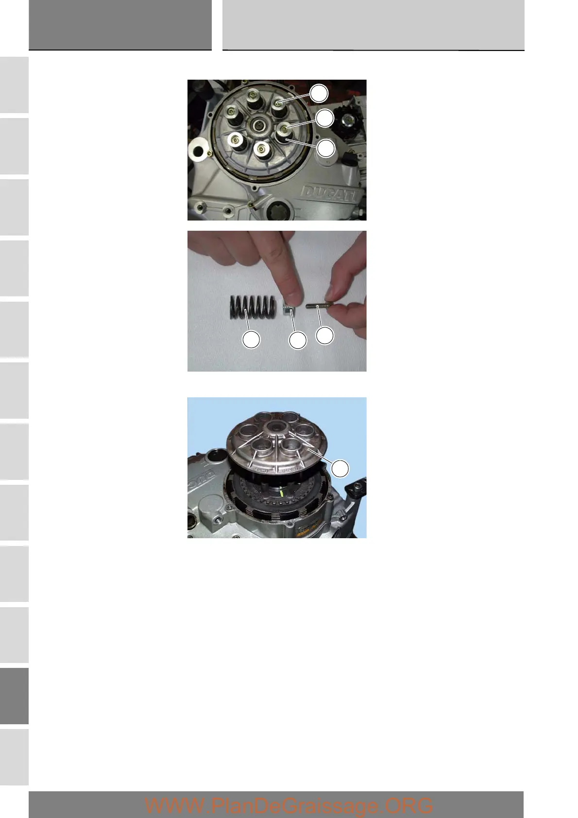 Unscrew the retaining bolts (4) and remove the collars (2) and the clutch springs (1).