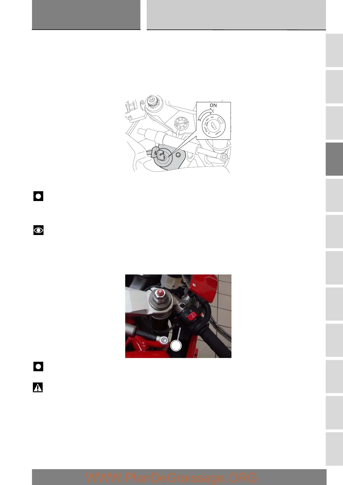 This model is equipped with servo-assisted starting; this function provides servo-assisted engine starting by pressing and