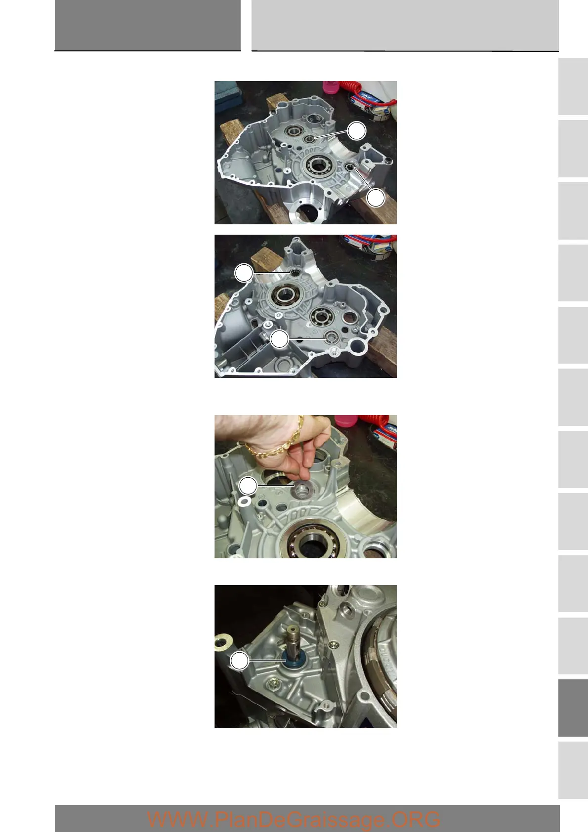 Take care not to lose the shim (6) interposed between the bearing (7) on the end of the gearbox input shaft and the chain side