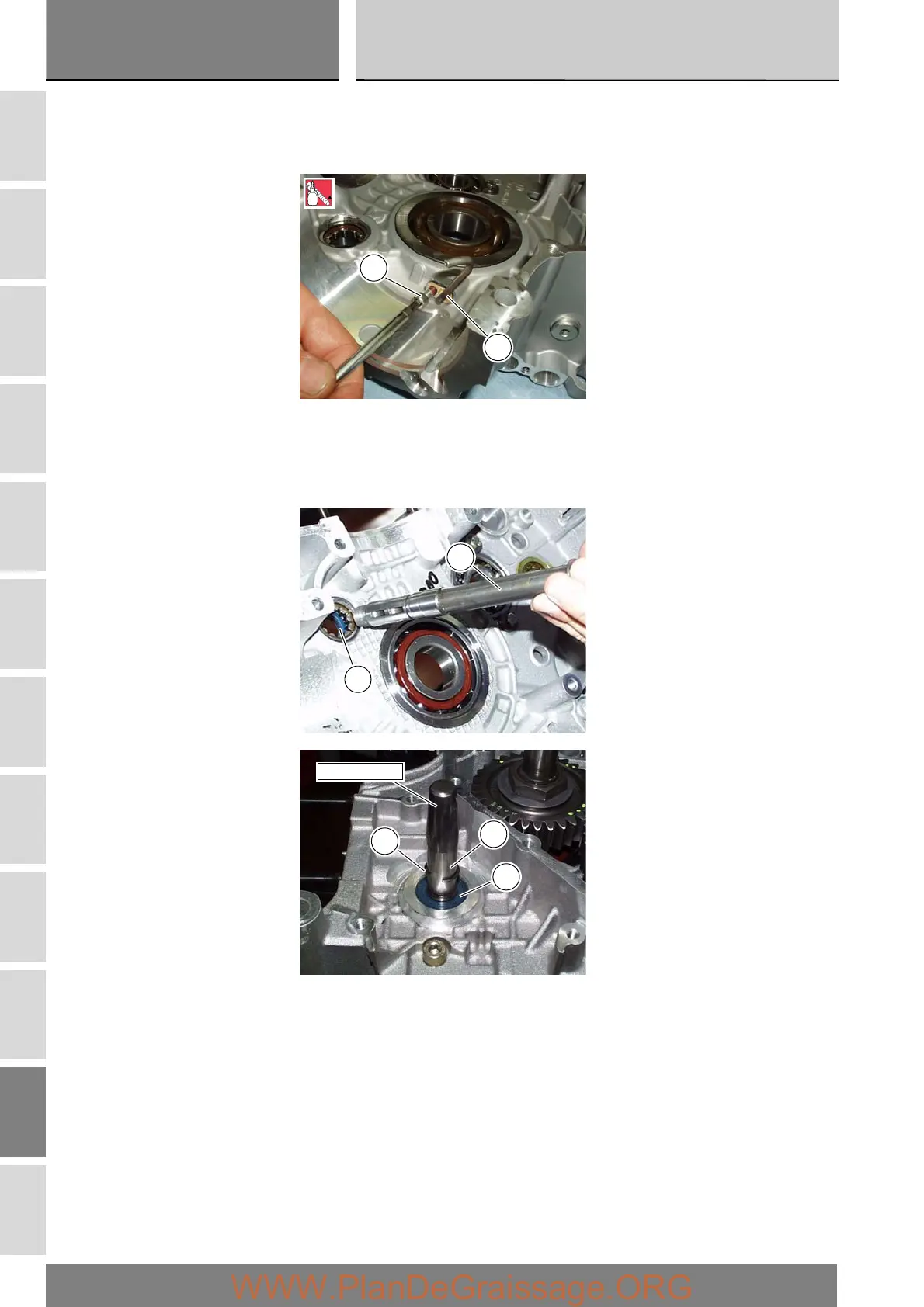 Install the timing belt driveshaft (30) in the roller bearing (4) in the right-hand crankcase half.