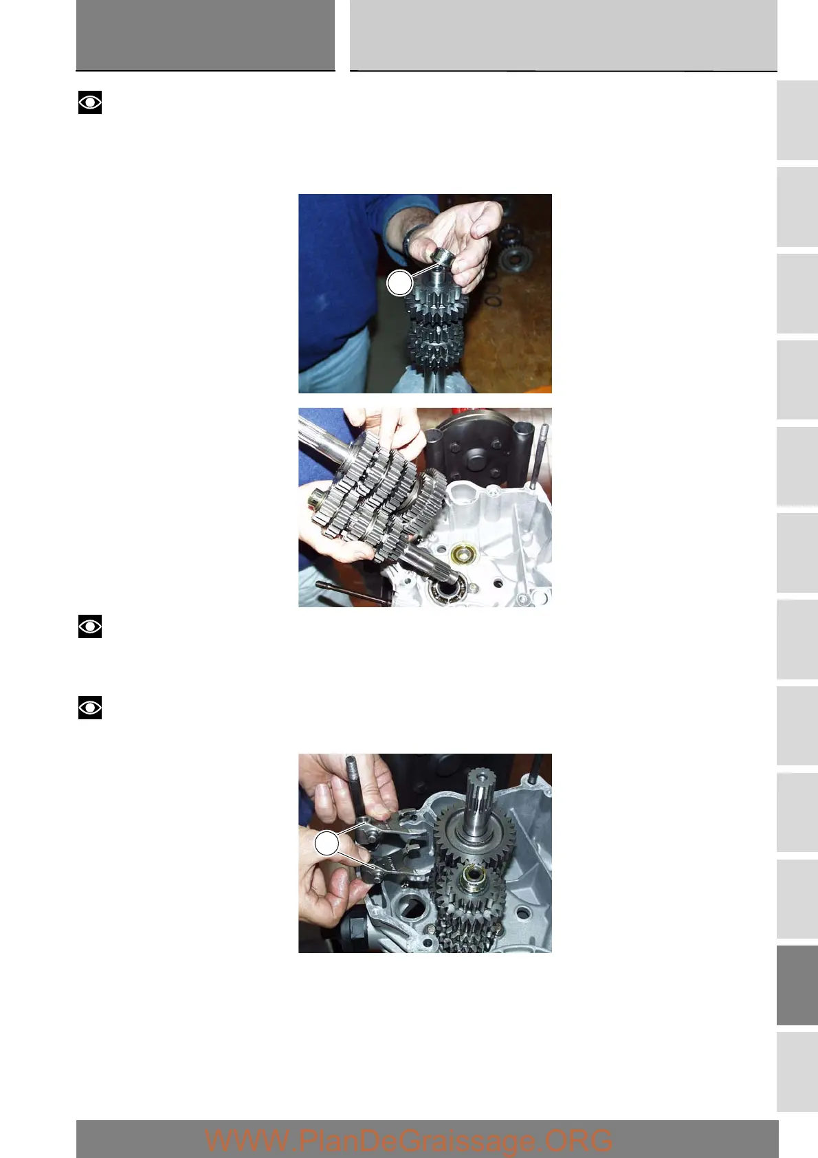 Mesh the gearbox shafts and install them on the right-hand crankcase half with the calculated shims.