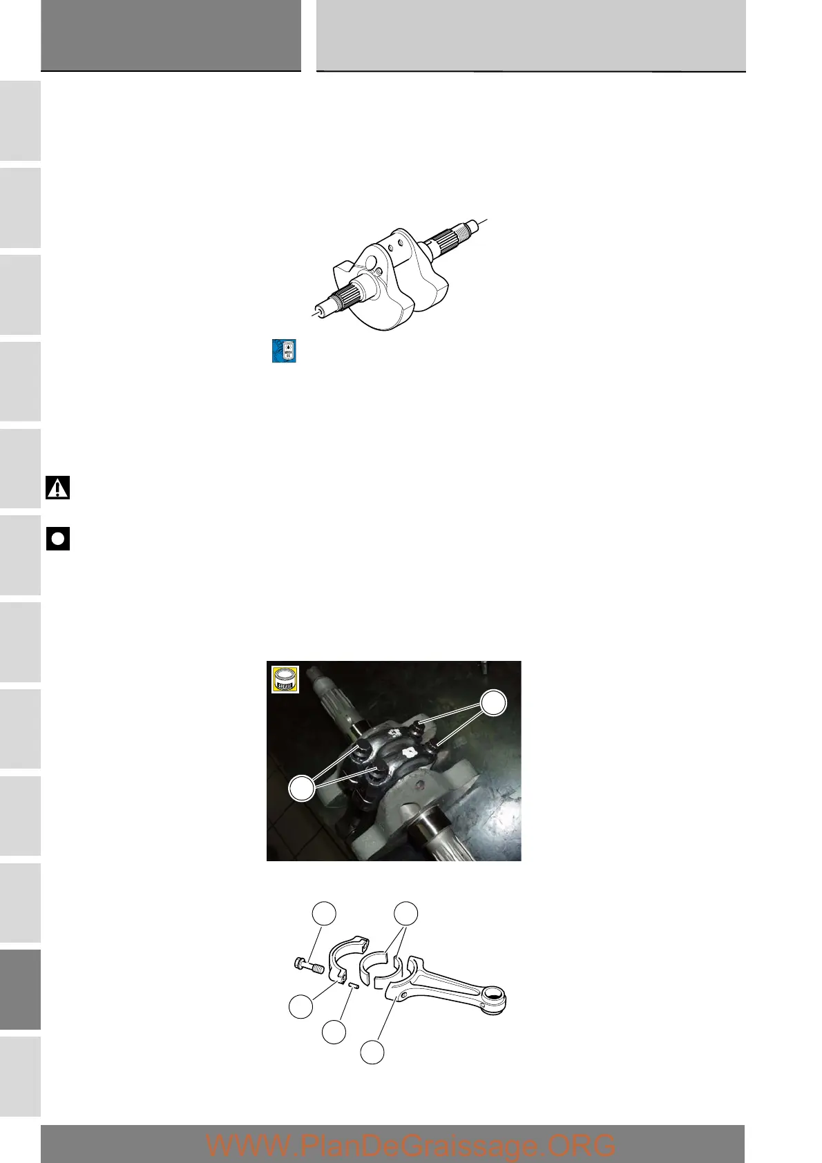 Before starting the work, check that the crankshaft main bearing journals and big-end journals are free of burrs or evident signs