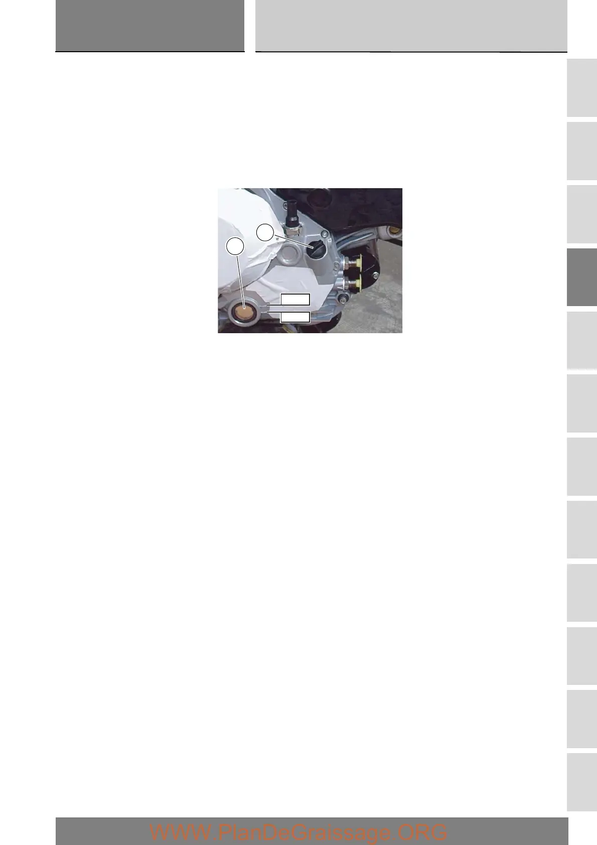 Remove the filler plug (2) and top up with the recommended oil.