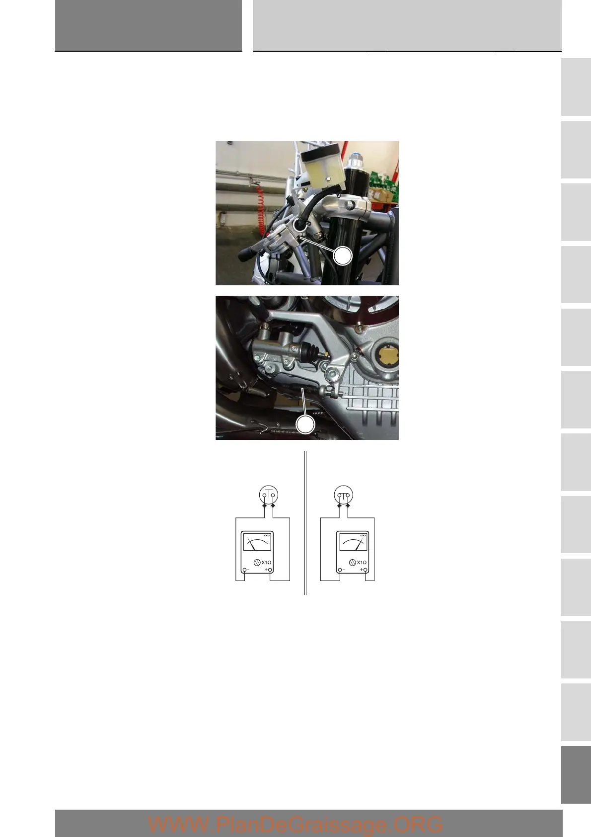 between the terminals of the corresponding switch when the front or rear brake is applied (see Sect. P 9, Diagnostic instruments