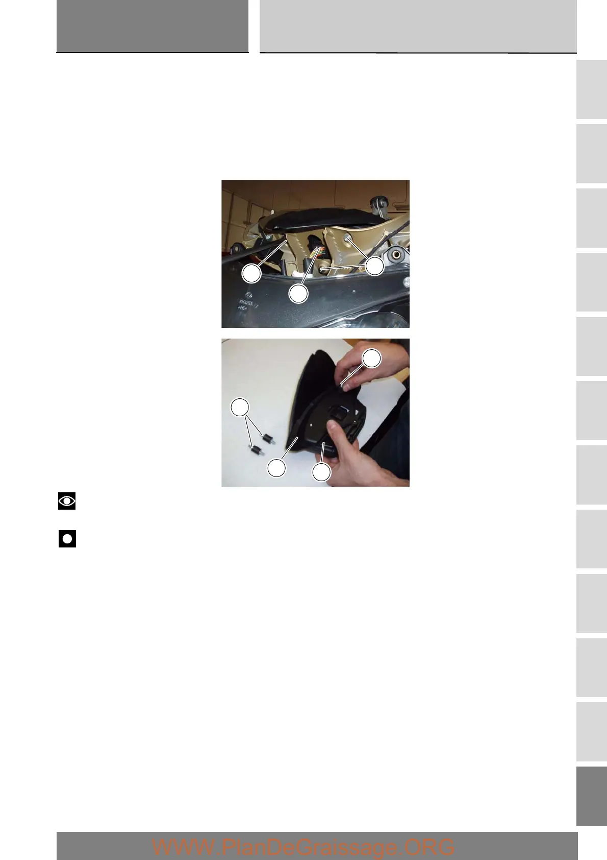 To remove the cover (4) from the instrument panel, remove the rubber mountings (5).