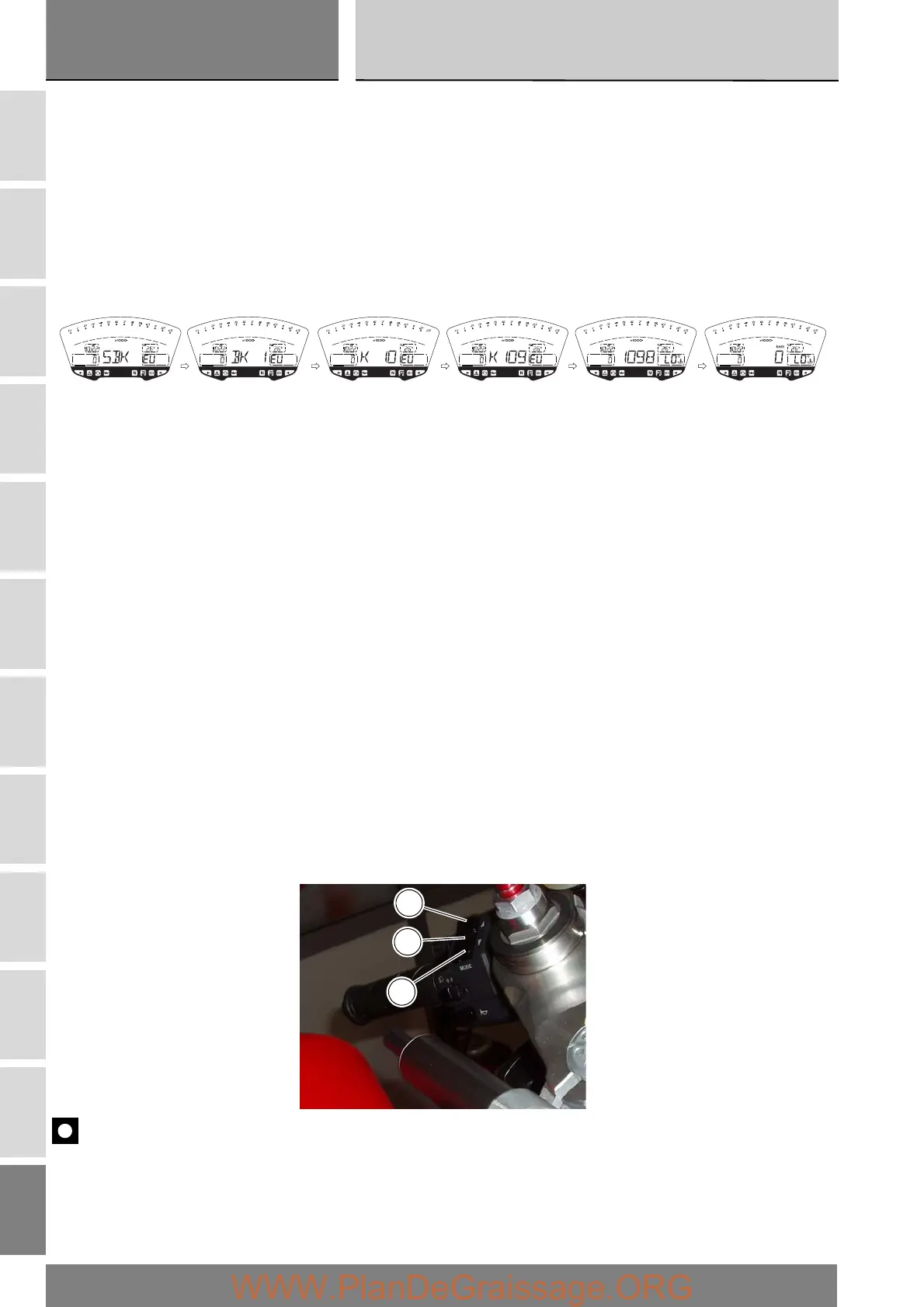 At this point, with button (1) in position A “▲” it is possible to switch from the odometer display function to the following
