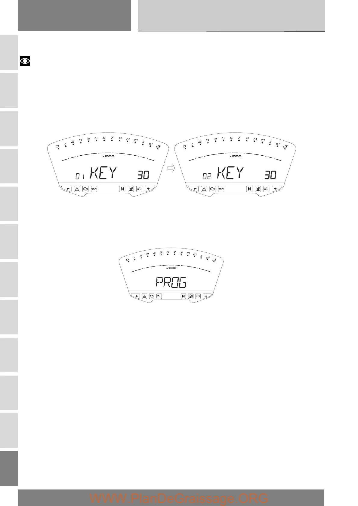 If the procedure was successful, the instrument panel will display the message “PROG” steadily for 3 seconds before returning
