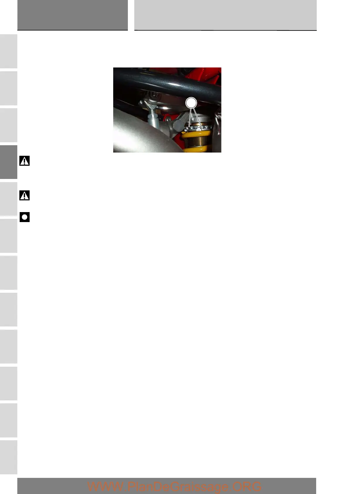 The two nuts (3) on the upper part of the shock absorber serve to adjust the preload on the outer spring. To adjust the spring