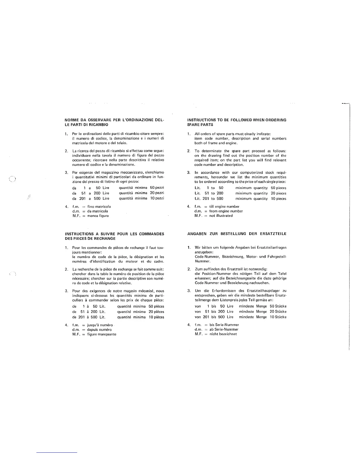 Ducati 350-500 - Ordering Spare Parts Instructions; Key Information for Orders; Locating Parts via Diagrams and Lists; Minimum Order Quantities by Price