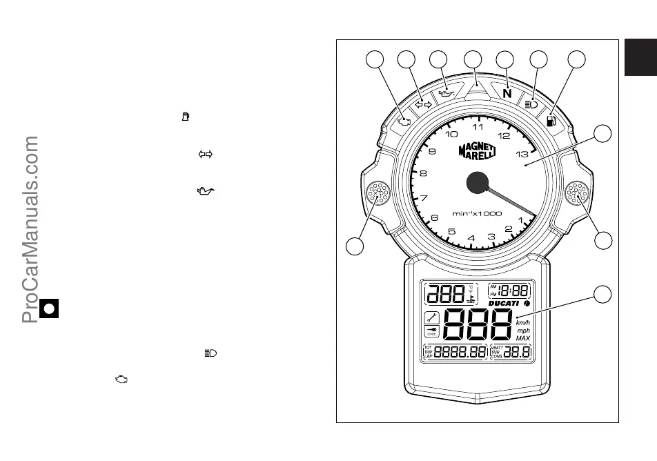 Non utilizzare il motociclo quando la spia (6) rimane