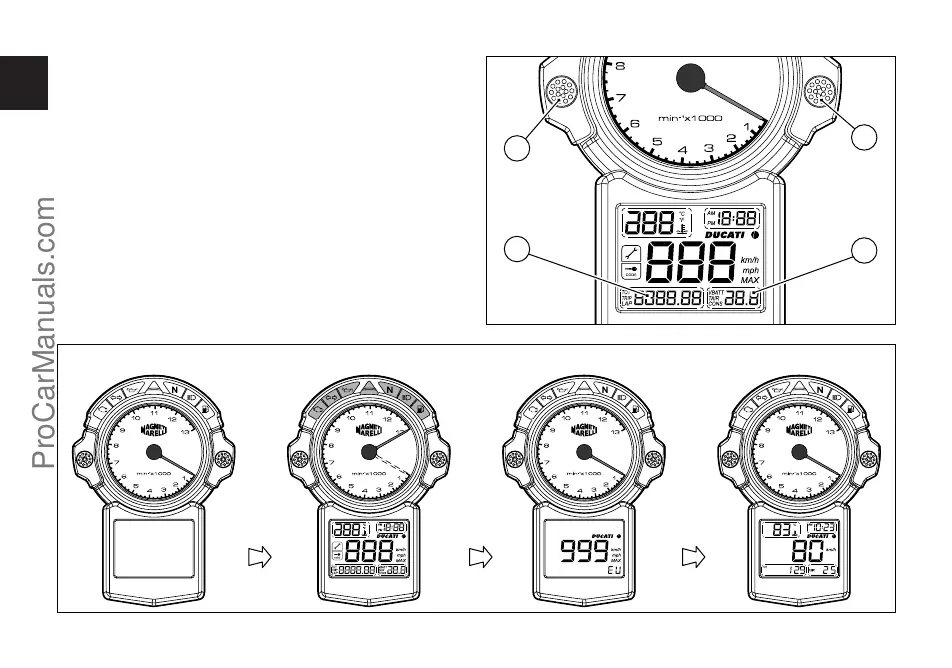 All’accensione (chiave da OFF a ON) il cruscotto esegue