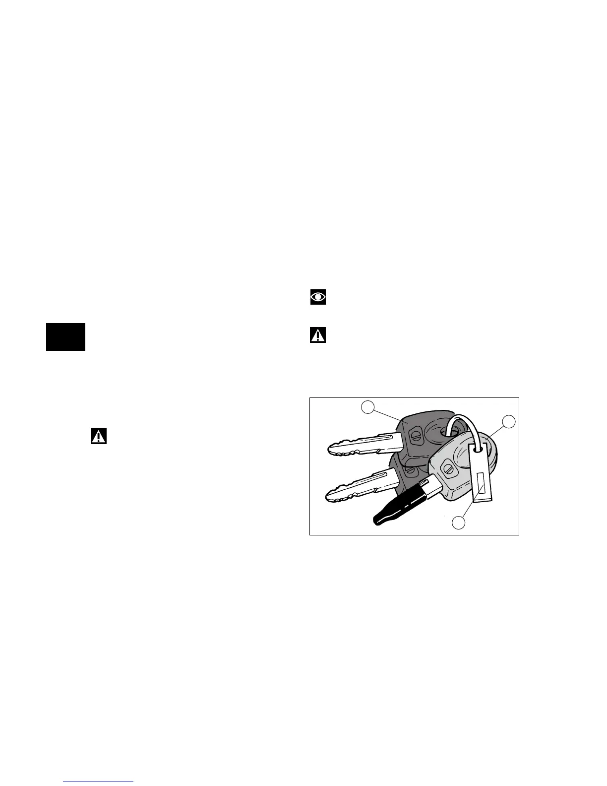 The keys B are regular ignition keys and are used to: