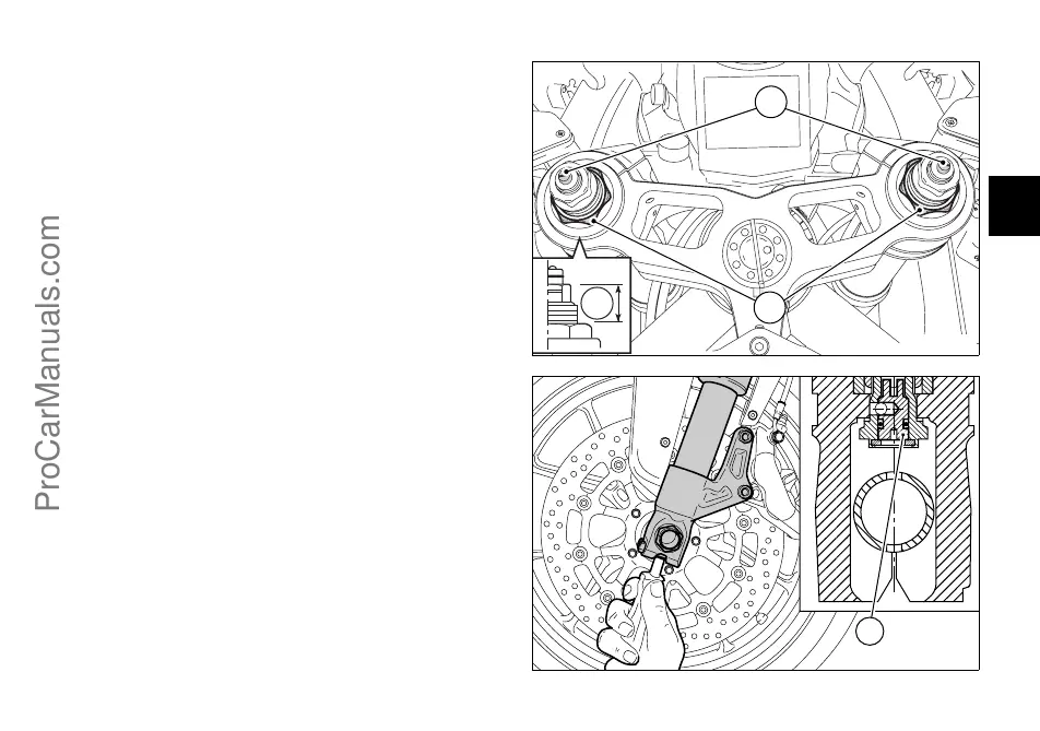 To set rebound damping, turn the top adjuster (1) on each