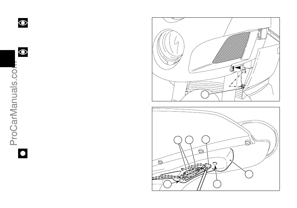 Unscrew the retaining screw (6) of the rear-view mirror.
