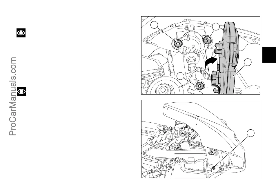 Unscrew the two screws (3) that secure the headlamp