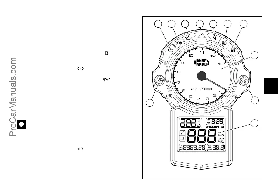Ne pas utiliser la moto si le témoin (6) reste allumé