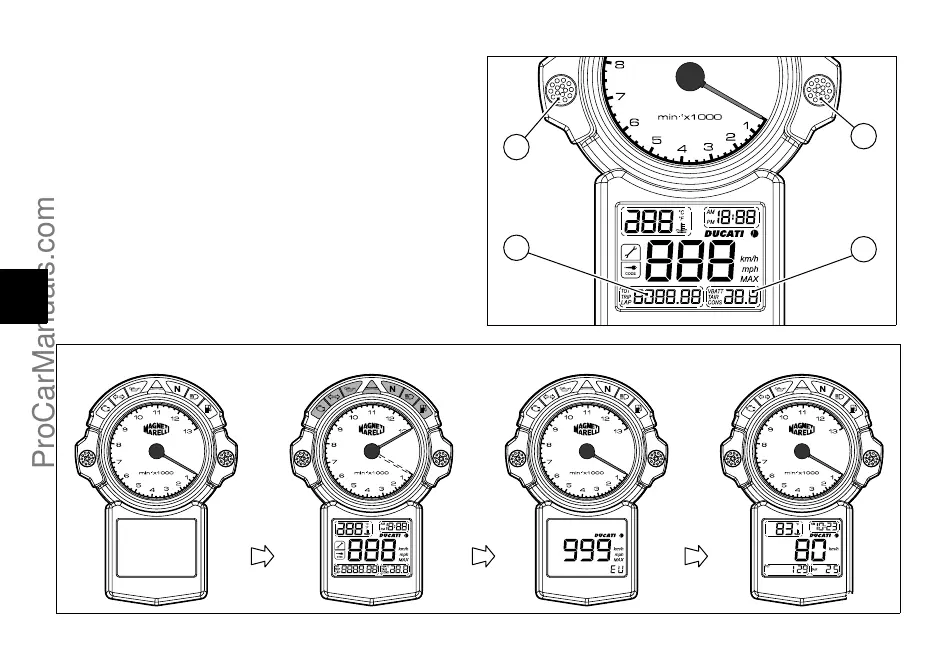 Appuyer sur le bouton (1) (fig. 6) clé sur ON pour alterner