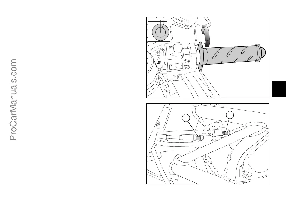 Dans toutes les positions, la poignée des gaz doit avoir