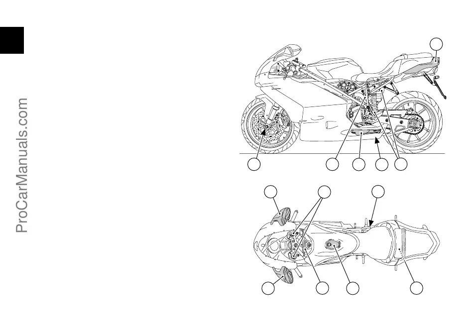 10)Silenziatore di scarico (vedi “Attenzione” a pag. 54).