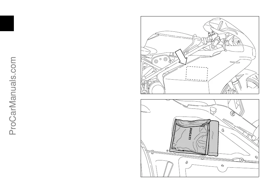 All’interno della semicarena destra è posizionata una busta
