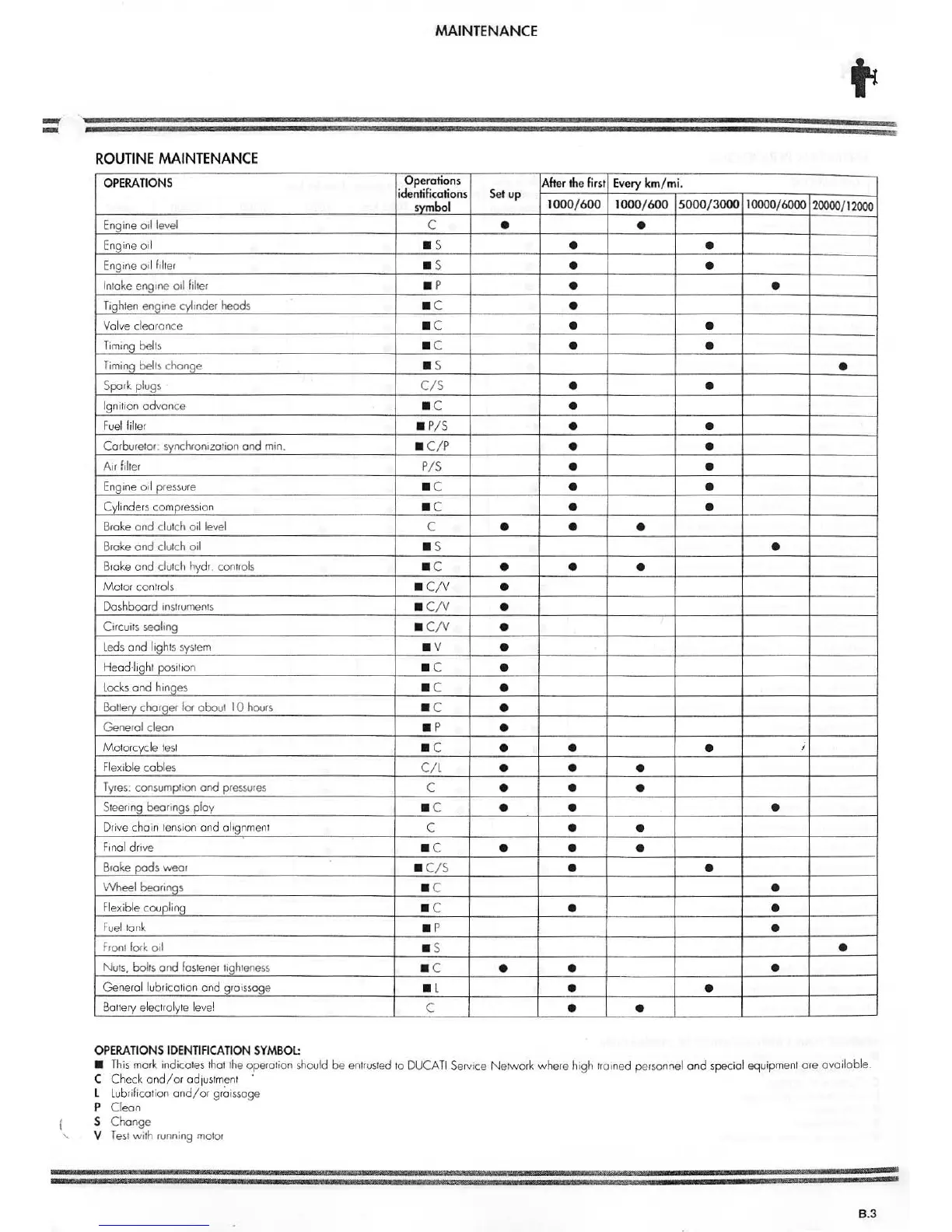 Ducati 750SS - Routine Maintenance Table; Operations Identification Symbol