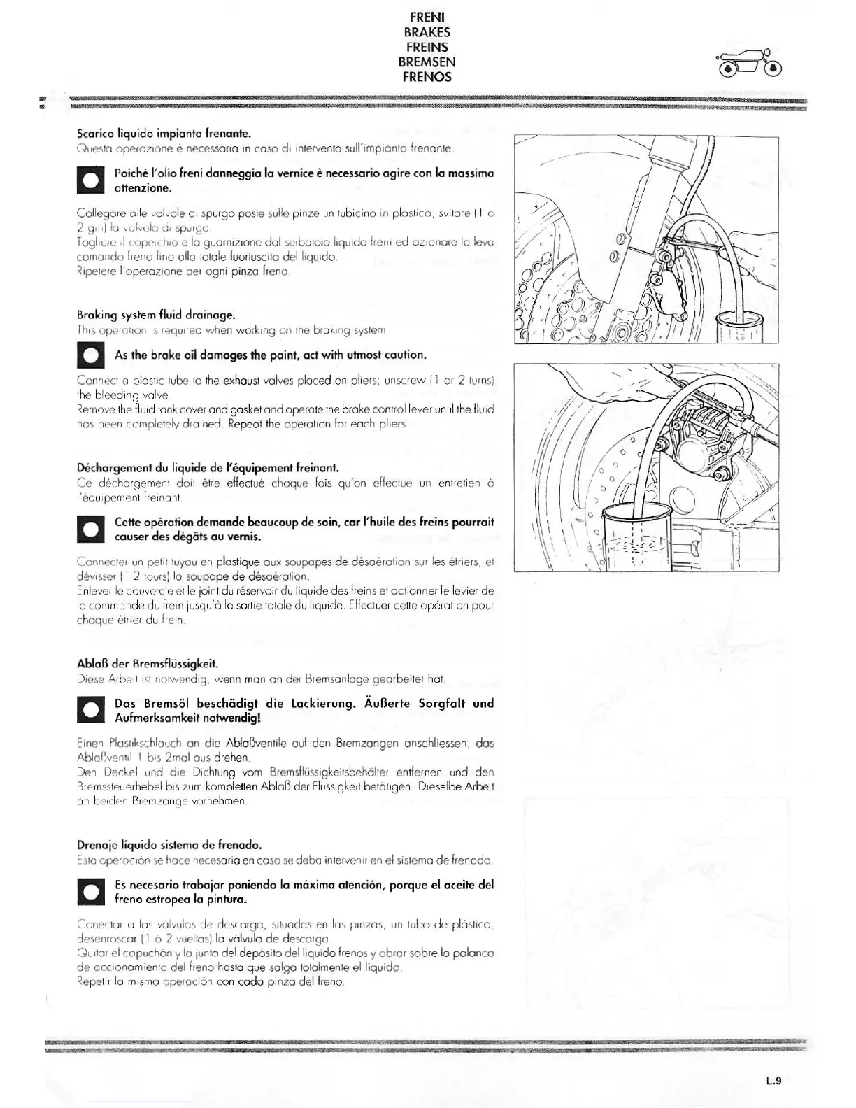 Braking system fluid drainage.
