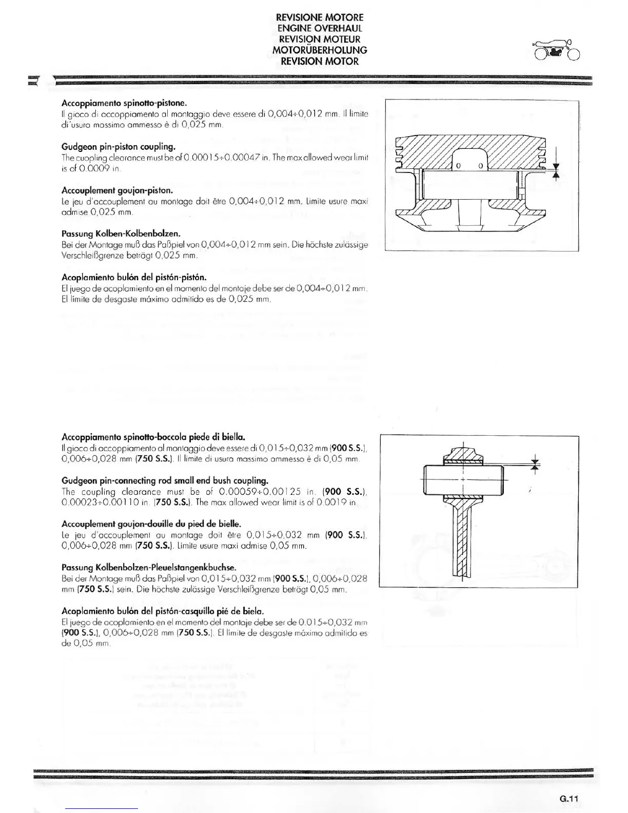 Ducati 900SS - Gudgeon Pin - Piston Coupling; Gudgeon Pin - Connecting Rod Small End Bush Coupling