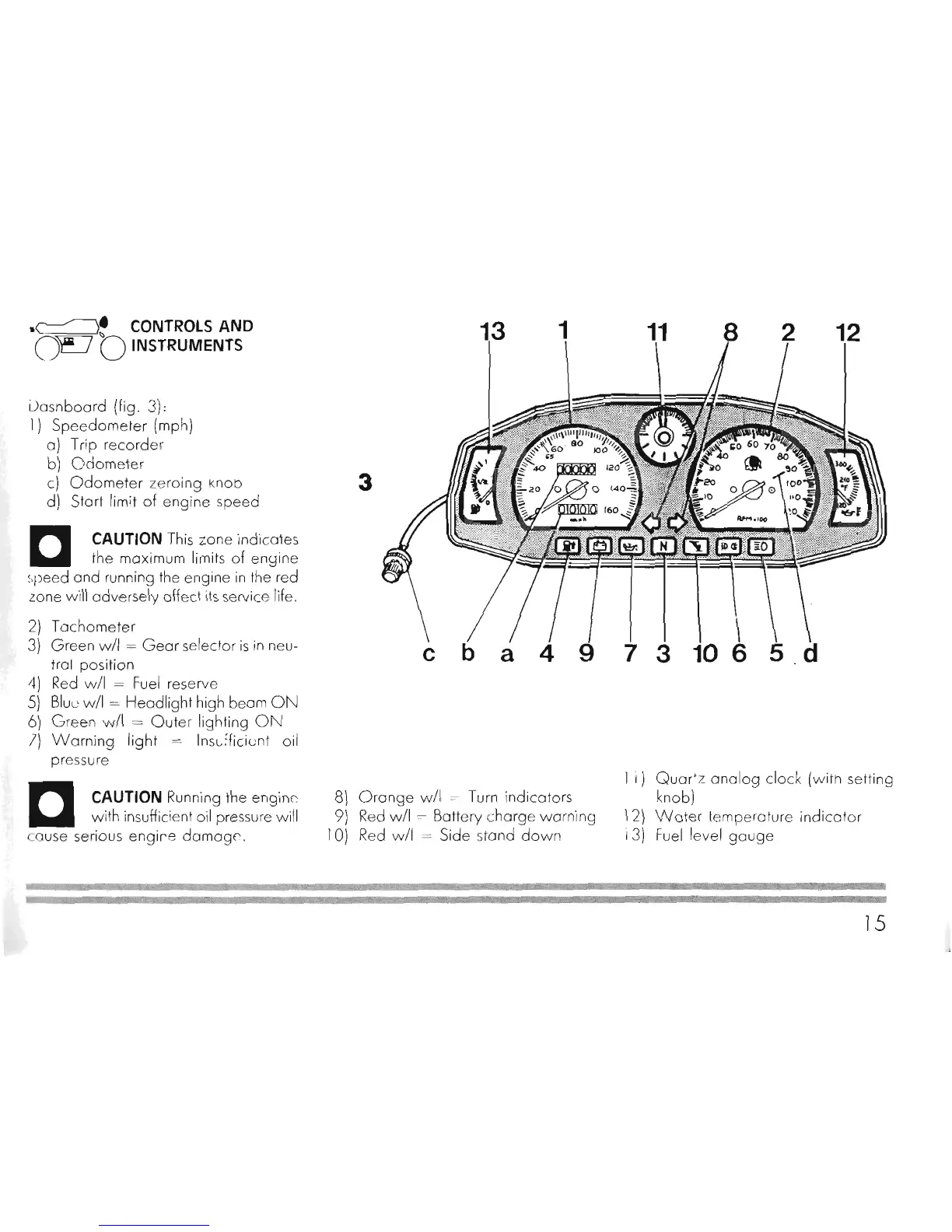 Ducati 906 Paso - Controls and Instruments; Dashboard Overview