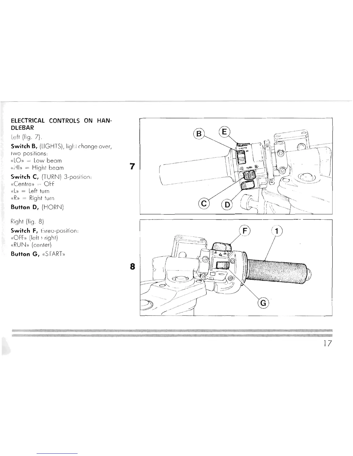Ducati 906 Paso - Electrical Controls on Handlebar; Left Handlebar Controls; Right Handlebar Controls