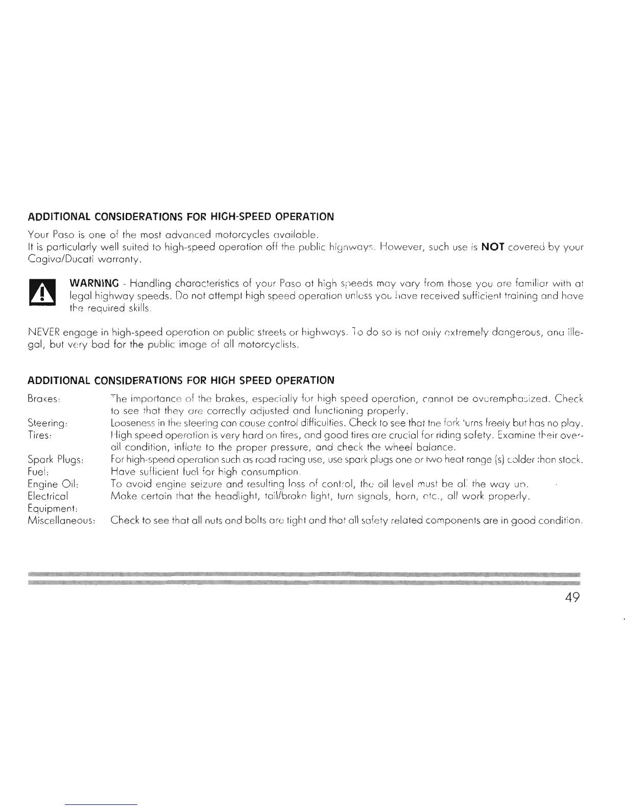 Ducati 906 Paso - Additional Considerations for High-Speed Operation