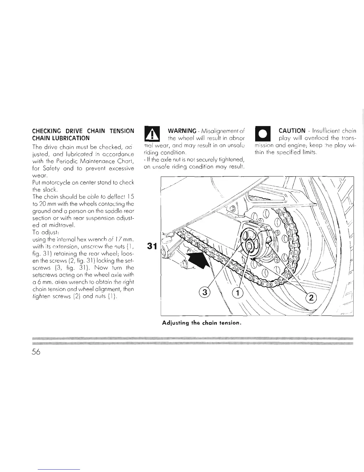 Ducati 906 Paso - Checking Drive Chain Tension; Chain Lubrication; Adjusting the Chain Tension