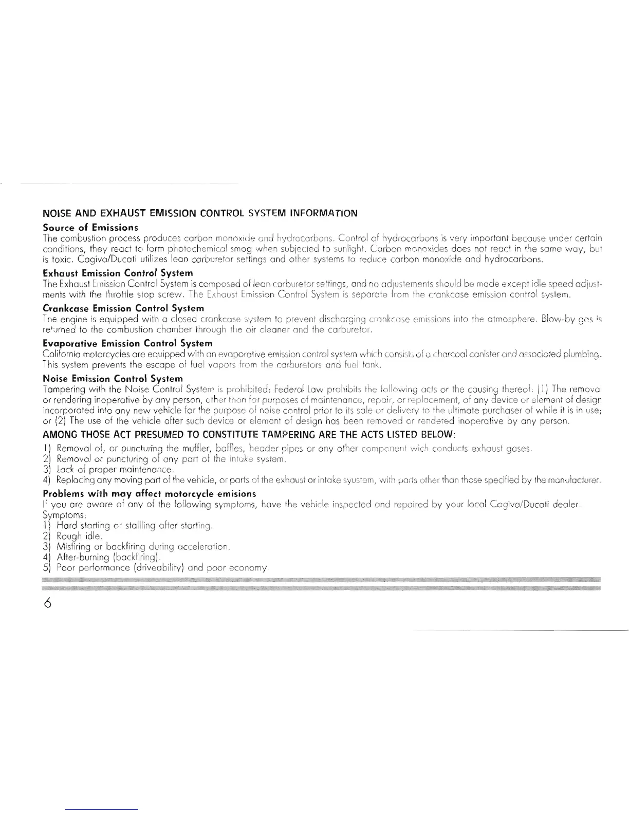Ducati 906 Paso - Noise and Exhaust Emission Control System Information