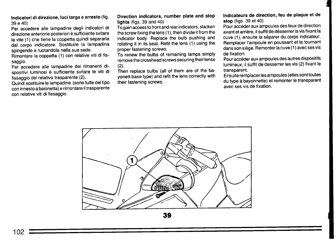 Indicatori di direzione, luci targa e arresto (fig. Direction indicators, number piste and stop Indicateurs de direction, feu de plaque et de