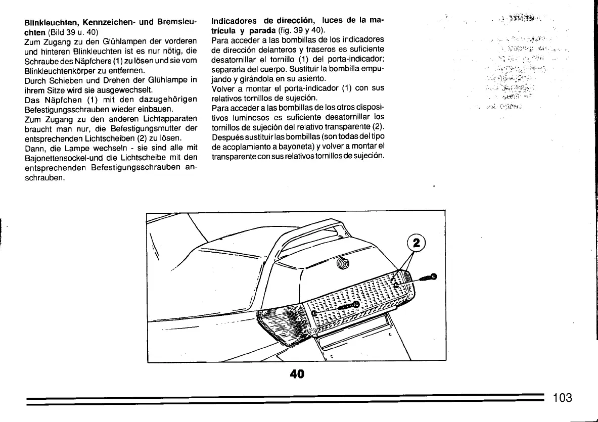 Blinkleuchten, Kennzeichen- und Bremsleu- Indicadores de dirección, luces de la ma- ,,)~1~;