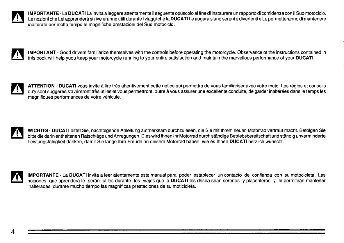 ... WICHTIG - DUCATI bittet Sie, nachfolgende Anleitung aufmerksam durchzulesen, die Sie mil Ihrem neuen Motorrad vertraut macht. Befolgen Sie