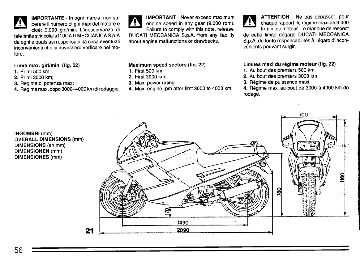 4. Regime max. dopo 3000+4000 km di rodaggio. 4. Max. engine rpm after first 3000 to 4000 km. 4. Régime maxi au bout de 3000 à 4000 km de