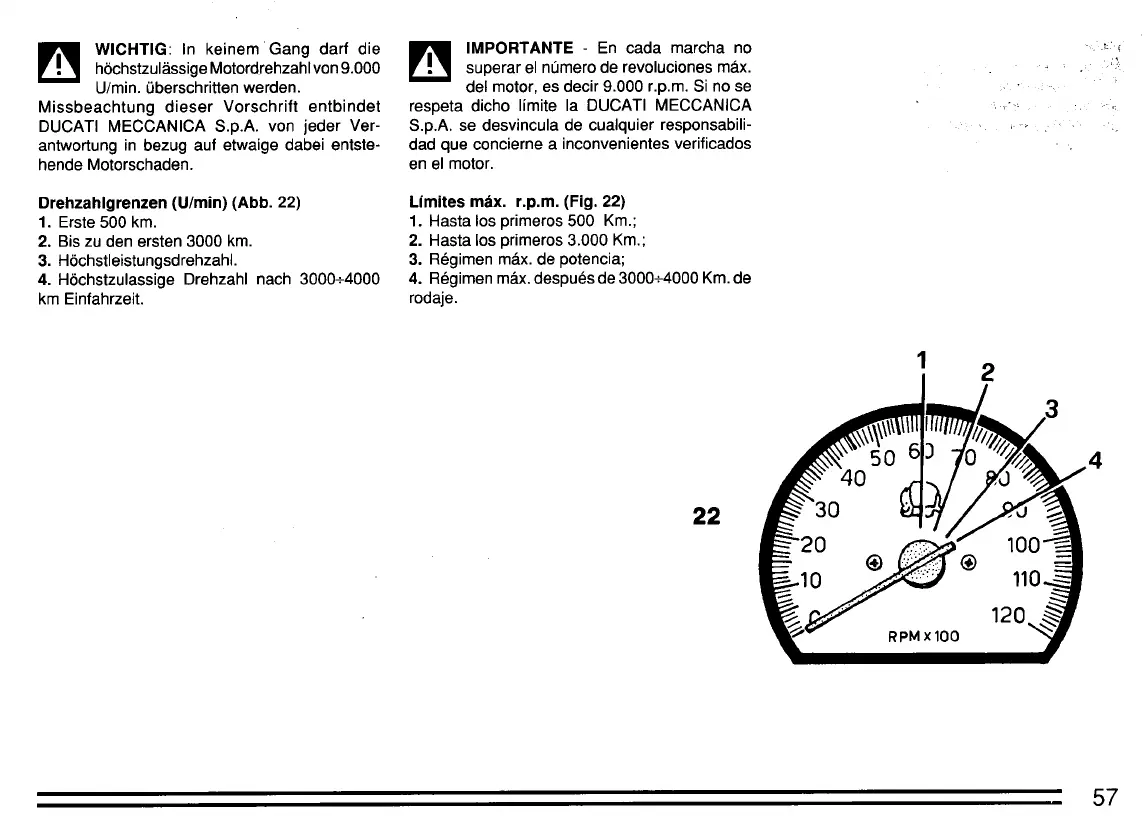 4. Höchstzulassige Drehzahl nach 3000+4000 4. Régimen máx. después de 3000+4000 Km. de