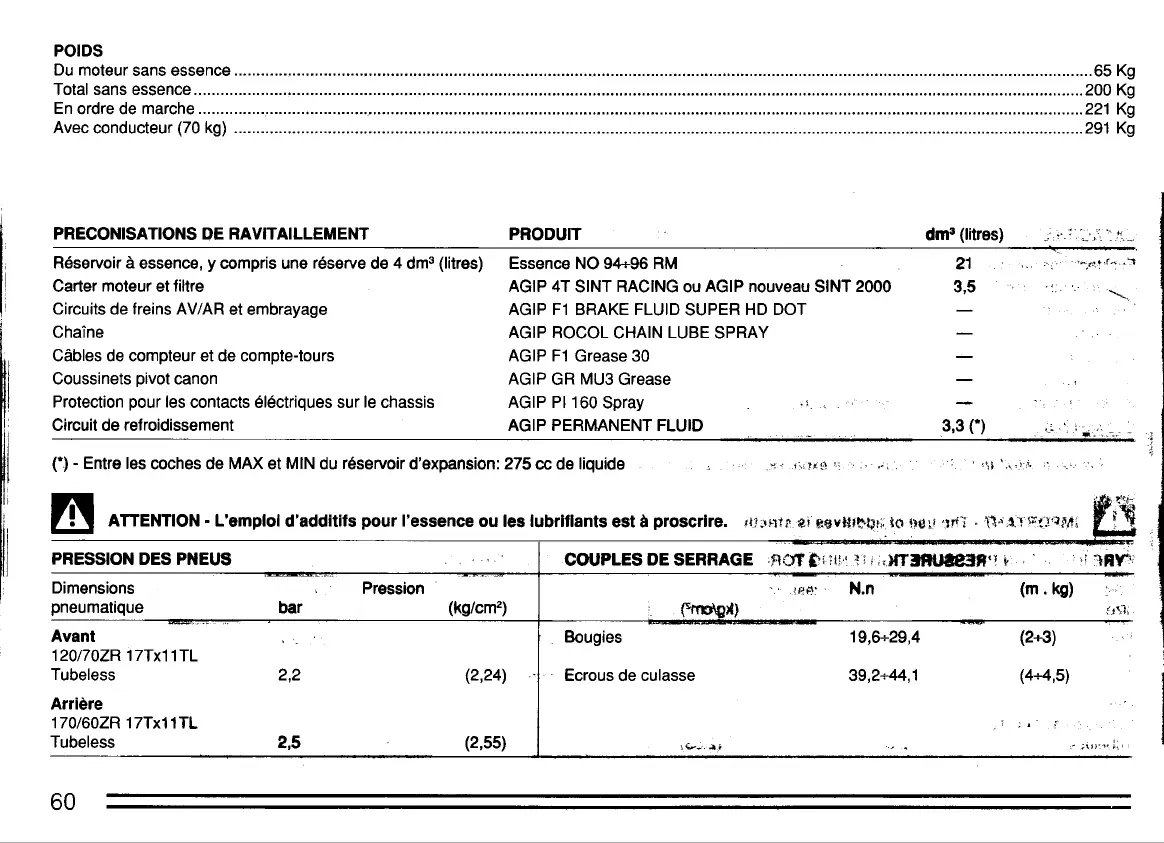 m ATTENTION - L'emplol d'additifs pour I'essence ou les lubriflants est à proscrire. 1IJ;)mt~! t'fJvij't-Qr; IO!)UV :,ri.,. . n"~f~!.,':Jj\Ai