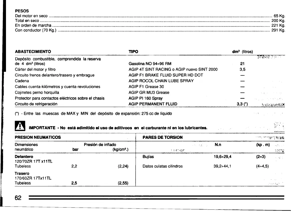 m IMPORTANTE. No está adlmltldo el uso de adltlvoos en el carburante nl en los lubricantes. " !:?i'iJ~1(iW("!:;;:' (,~Q ijl' ;'tj('.~' tB