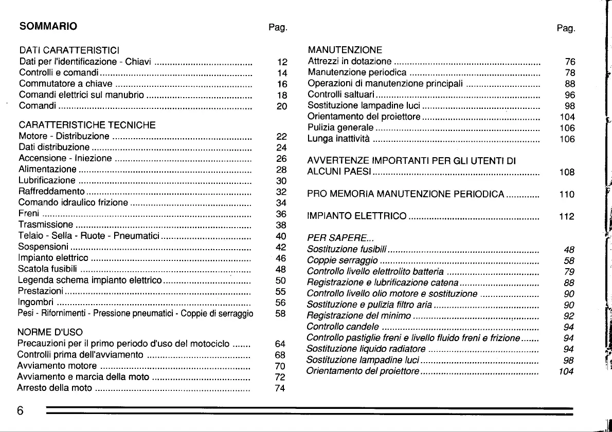 Precau~lon.1 per II ~rlm~ perlodo d uso del motoclclo 64 Sostituzione liquida radiatore 94 óIc.