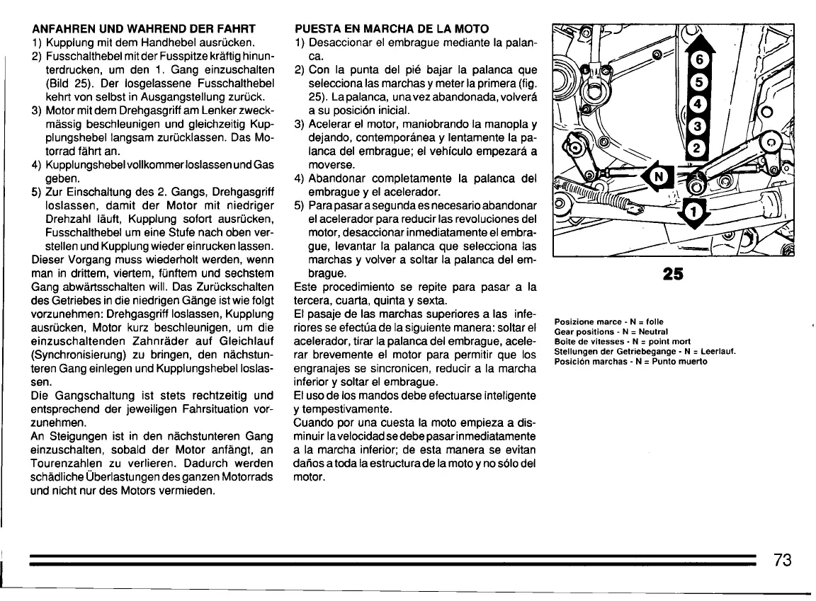 ANFAHREN UND WAHREND DER FAHRT PUESTA EN MARCHA DE lA MOTO