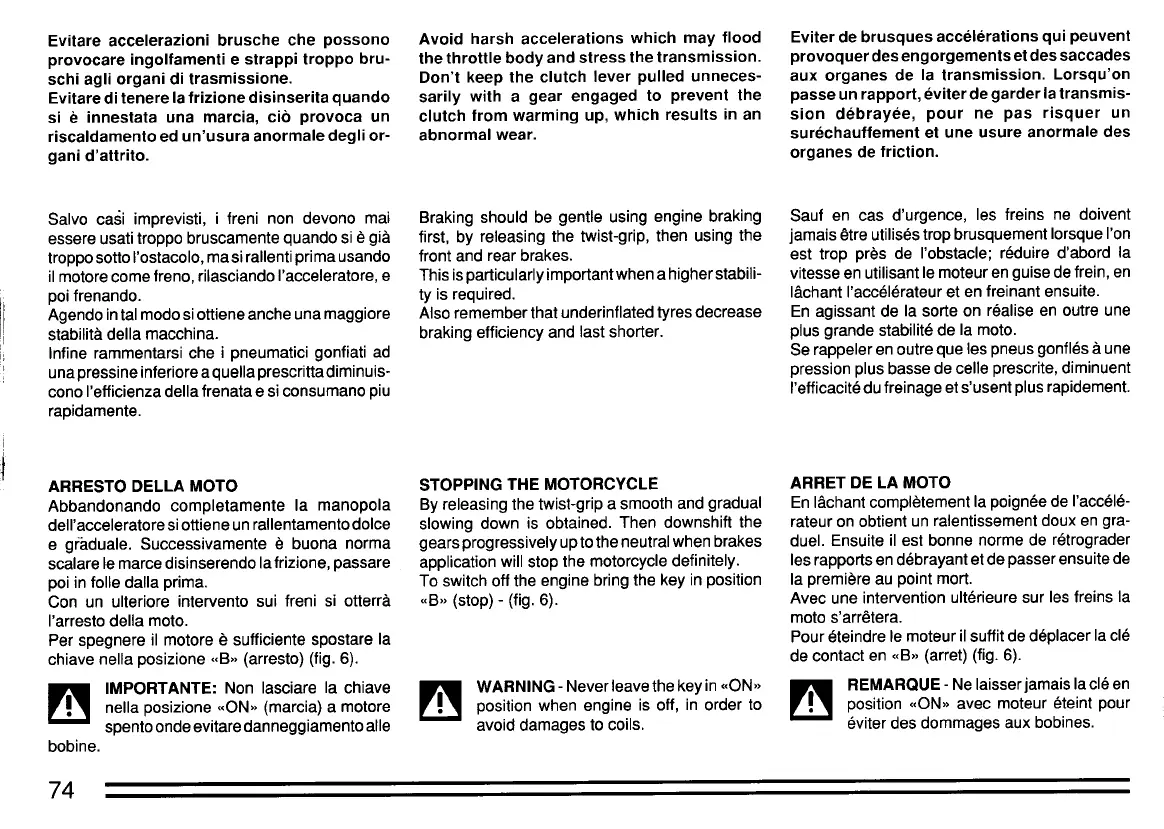 Salvo casi imprevisti, i freni non devono mai 8raking should be gentIe using engine braking Saul en cas d'urgence, les freins ne doivent
