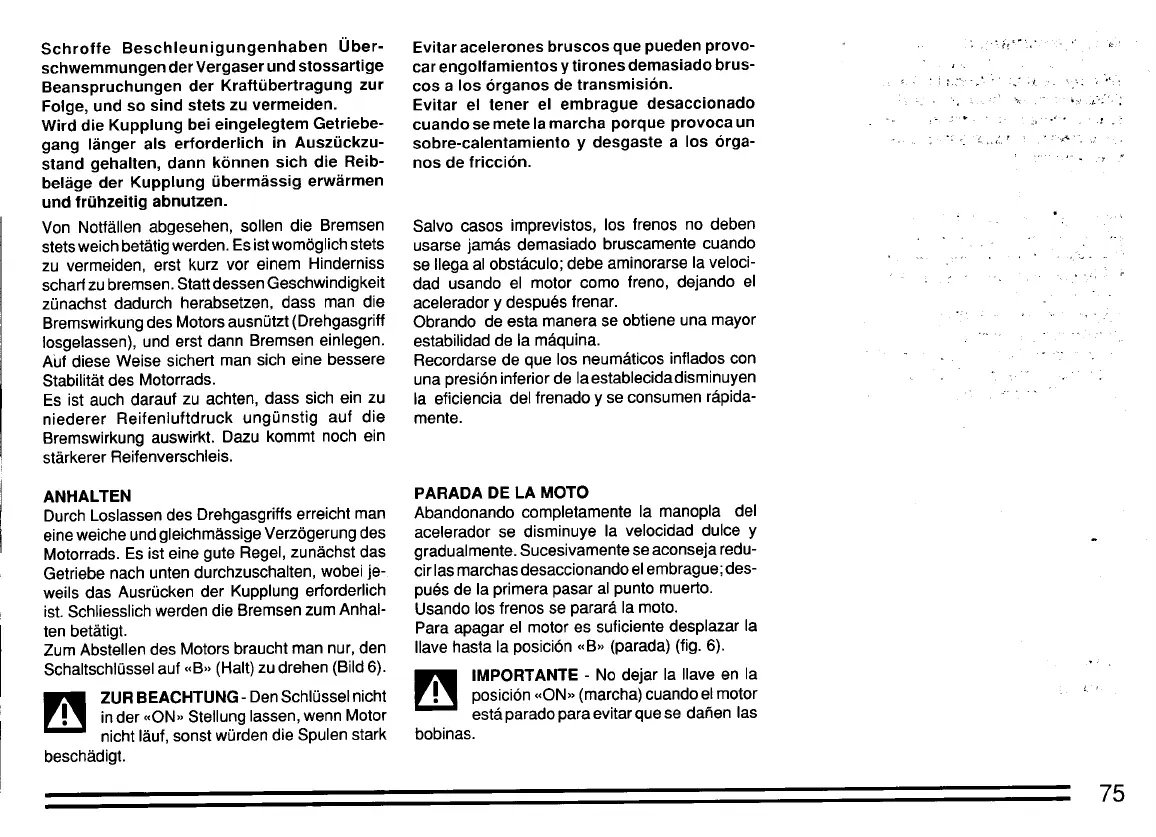 Zum Abstellen des Motors braucht man nur, den lIave hasta la posición «B" (parada) (fig. 6).