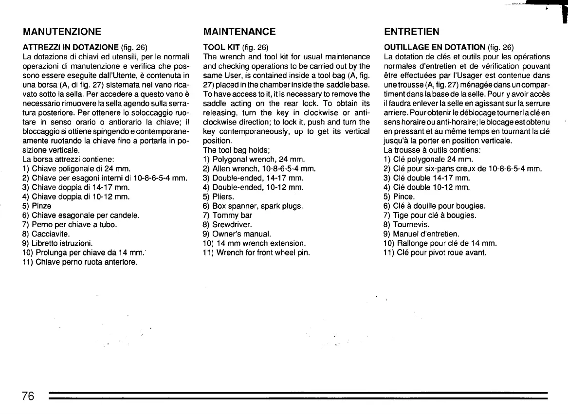 ATTREZZIIN DOTAZIONE (fig. 26) TOOL KIT (fig. 26) OUTILLAGE EN DOTATION (fig. 26)