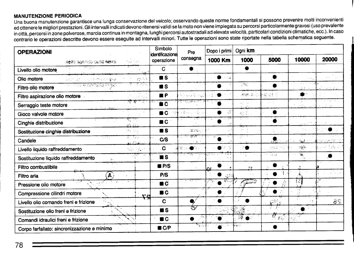ed ottenere le migliori prestazioni. Gli intervalli indicati devono ritenersi validi se la moto non viene impiegata su percorsi particolarmente gravosi (uso prevalente
