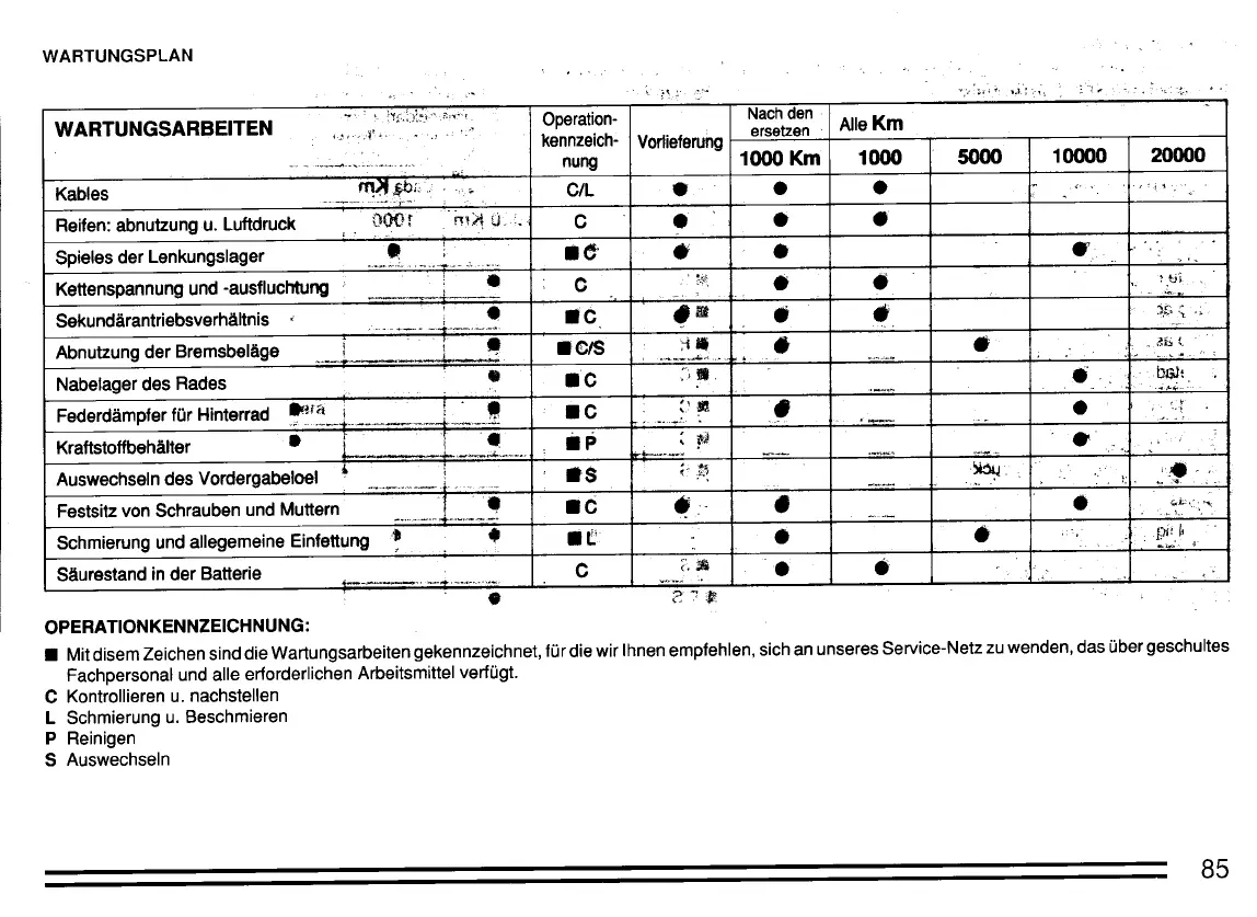 WARTUNGSARBEITEN ~ ,';'é:J:""""', Operation- Nach den Alle Km '