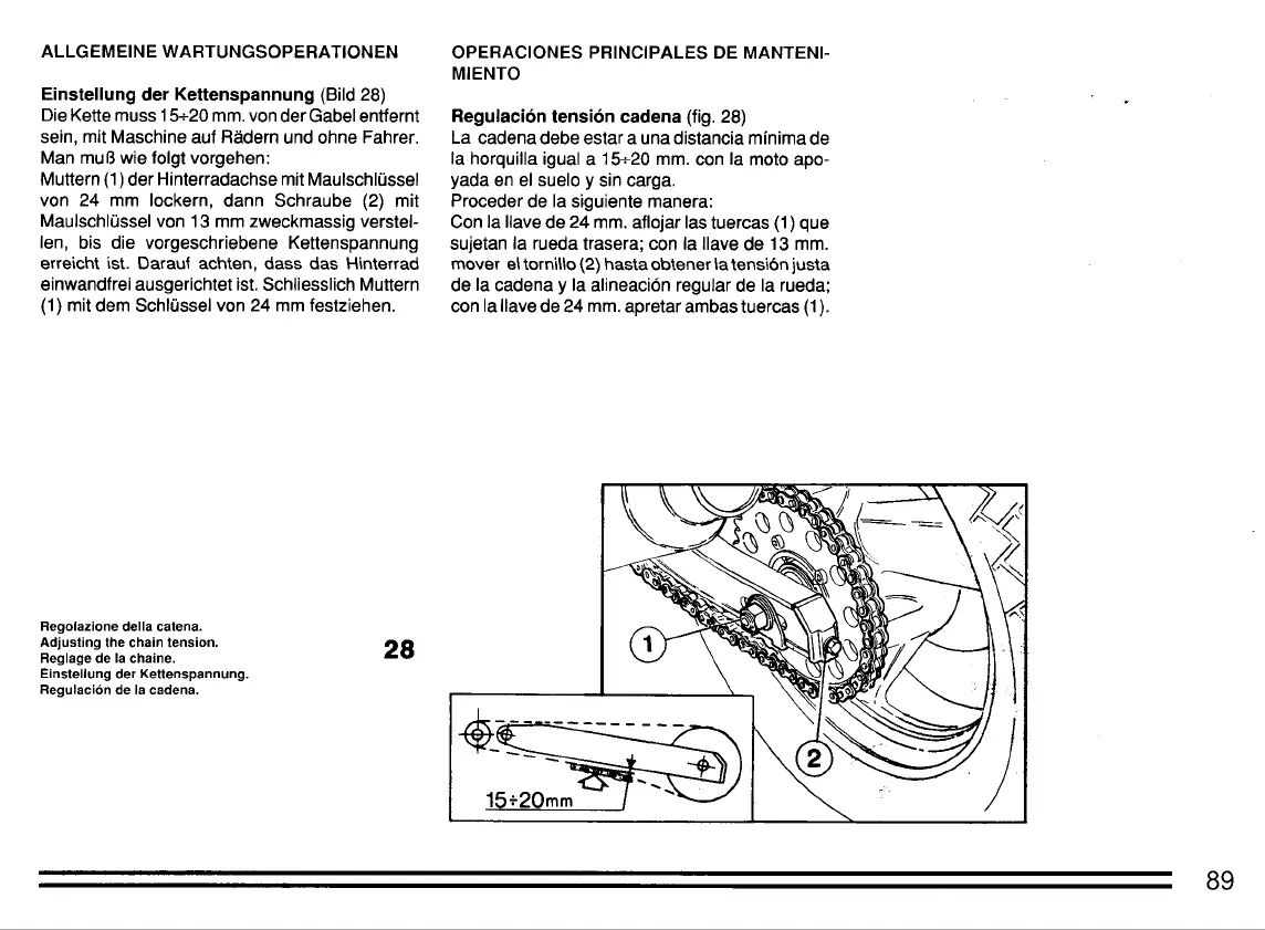Die Kette muss 15+20 mmo van der Gabel entfernt Regulación tensión cad en a (fig. 28)