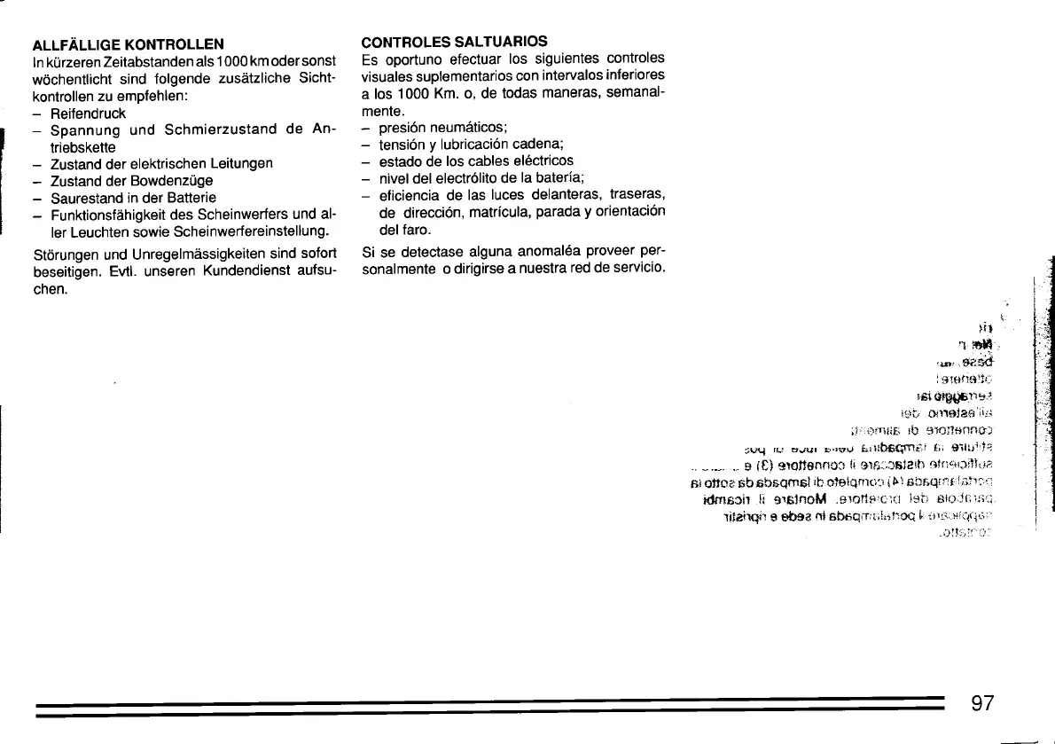 - Zustand der Bowdenzüge - nivel del electrólito de la baterfa;